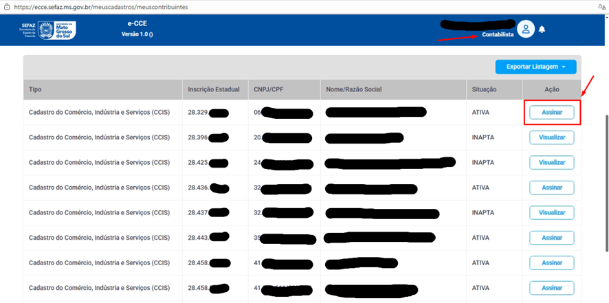Ir na opção Meus Contribuintes -> ASSINAR: