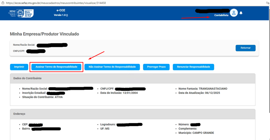 Após a Finalização, a etapa de Assinatura do CONTABILISTA se encontra finalizada.