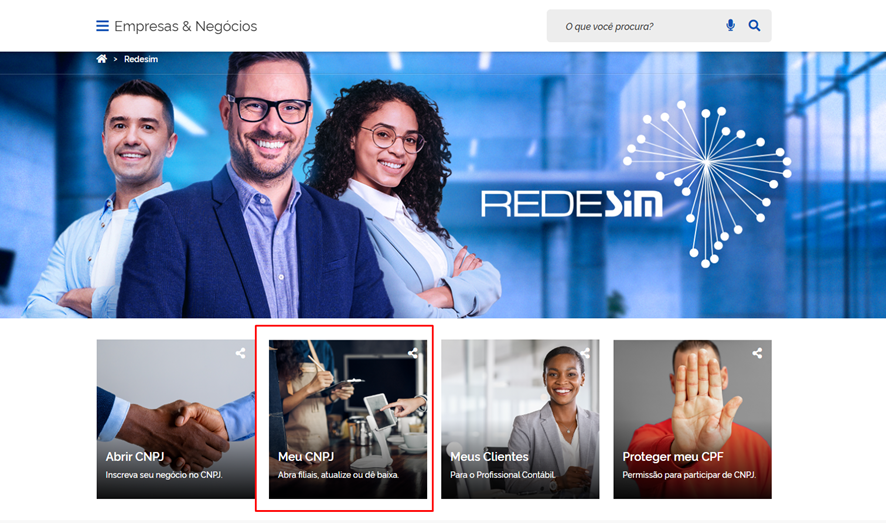 Acessar a REDESIM FEDERAL – https://www.gov.br/empresas-e-negocios/pt-br/redesim ir na opção MEU CNPJ:
